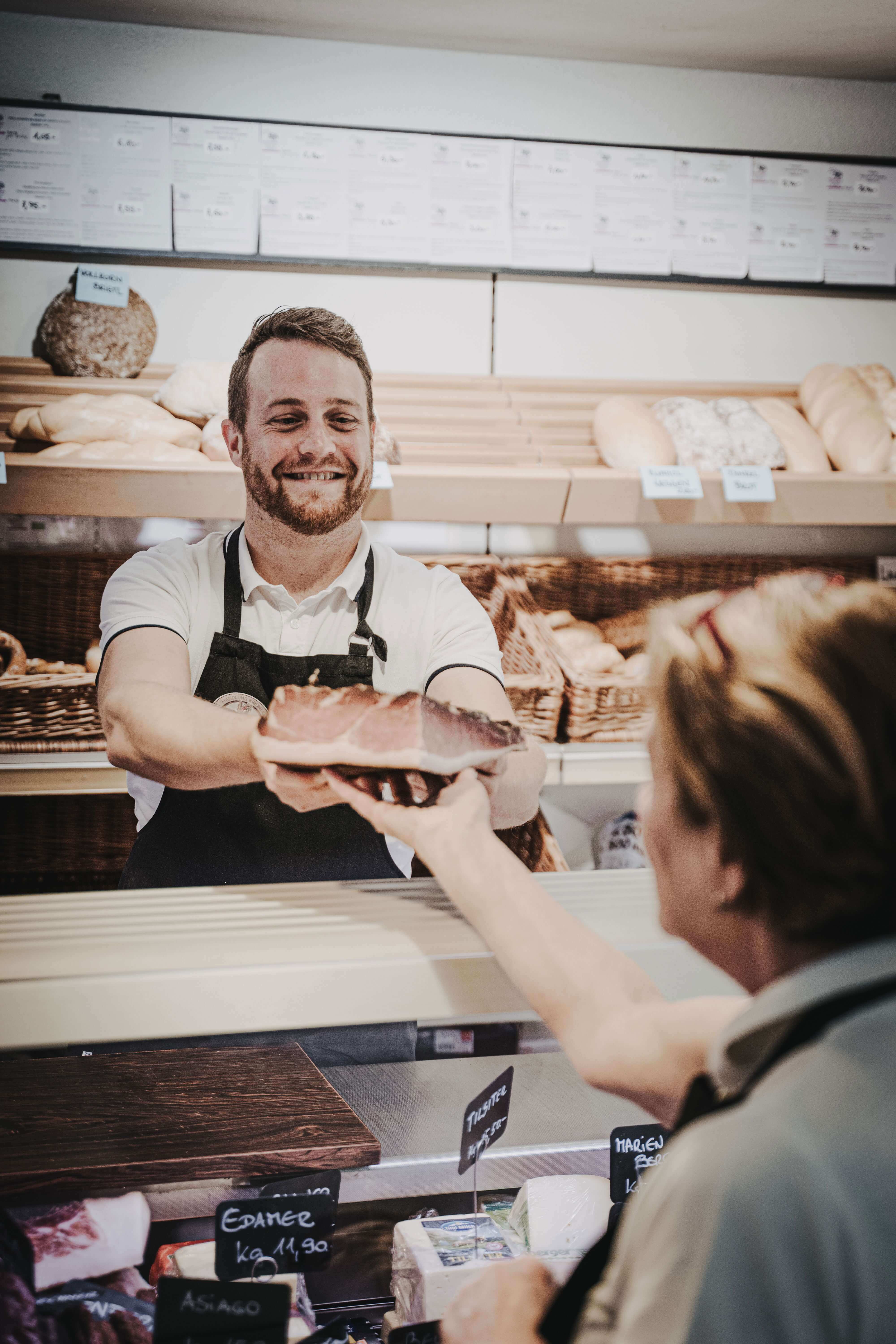 Qualitätsprodukte, die wir an unserer Theke in St. Johann anbieten, haben auch hier ihren großen Auftritt. Würziger Speck und Wurst, knackiges Schüttelbrot, besondere Weine, Blütenhonig oder das Beste aus dem Ahrntal im Verkostungspaket: Wähle aus, was dir schmeckt und lass deinen Gaumen zurück in die Südtiroler Bergwelt entführen!
