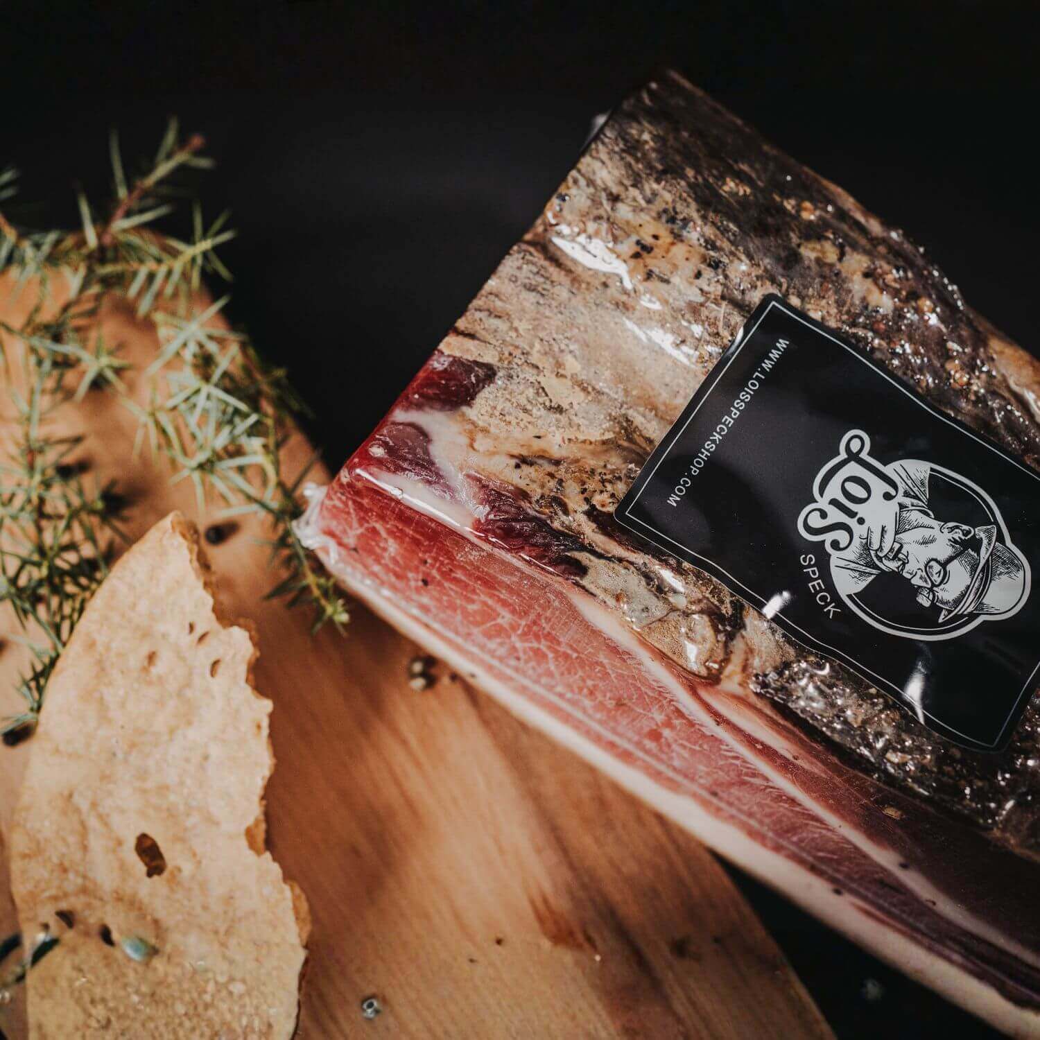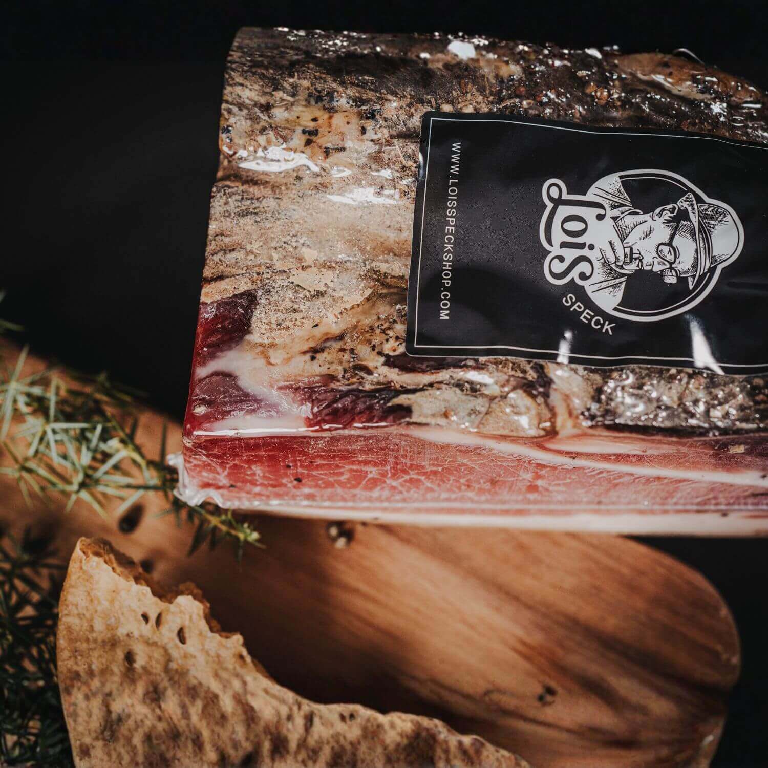 Lo Speck Lois è un prodotto altoatesino sostanzioso e di alta qualità, ottenuto da cosce di maiale accuratamente selezionate, massaggiate con una speciale miscela di sale, essiccate all'aria fresca di montagna e delicatamente affumicate con legno di faggio e abete rosso. Mesi di stagionatura gli conferiscono il suo aroma inconfondibile, la delicata marezzatura e il caratteristico colore che va dal rosso intenso al rosa scuro. Servito a fette sottilissime, è una delizia con pane fresco, come antipasto o come ingrediente aromatico in molti piatti.